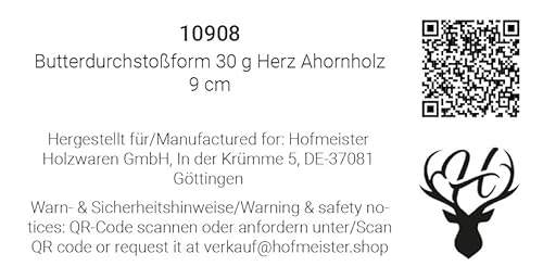 Hofmeister wooden butter press, 30 g, heart, made from maple wood