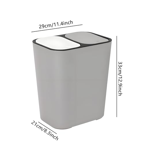Holdfiturn Double Recycling Waste Bin Rectangle Plastic Trash Can Dual Compartment Garbage Storage Box Container Push-Button Rubbish Bin for Kitchen Office Home (Grey)