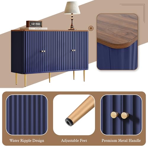 HOLTICO Sideboard, Buffet Modern Accent Cabinet with 4 Doors and Removable Shelves, Credenza Hallway Cabinet with Storage Space for Living Room, Dining Room (Blue)