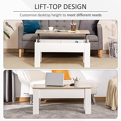 HOMCOM Lift Top Coffee Table with Hidden Storage Compartment, Lift Tabletop Pop-Up Center Table for Living Room