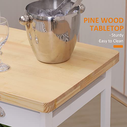 HOMCOM Rolling Kitchen Island Trolley Cart Drawer Shelves Basket Wheels W/ 6 Bottle Wine Rack White