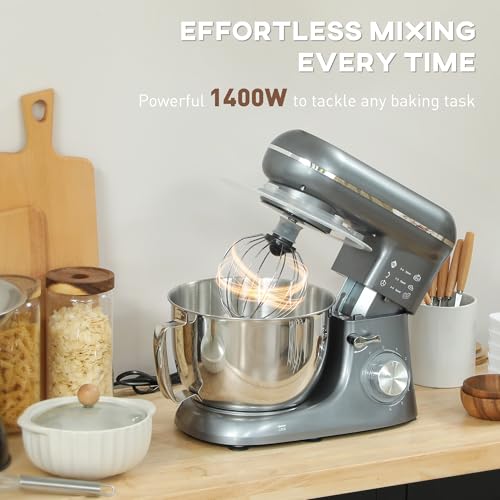 - 1300W motor, with anti-slip base: A powerful kitchen mixer effortlessly, which handles even the toughest of ingredients, with overheat protection for safety. Stands in place as it's mixing – no ingredients spilt.