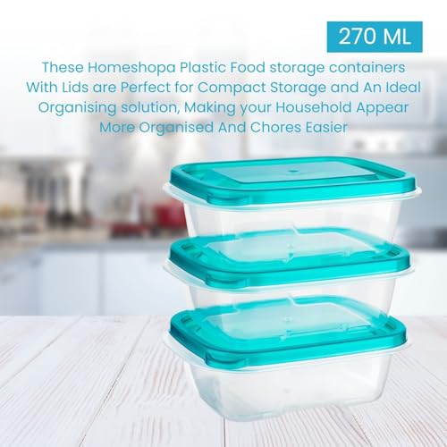 HOMESHOPA Food Storage Containers, 6 Pack Rectangular BPA Free Plastic Containers with Airtight Lids, Reusable, Stackable, Nestable Meal Prep Boxes, Microwavable, Freezer and Dishwasher Safe, 270 ML