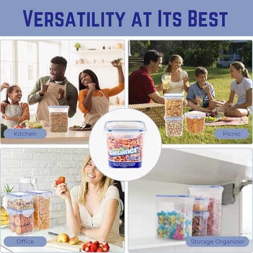 - AIRTIGHT SEAL, MAXIMUM FRESHNESS: Designed with a reliable locking mechanism, Our leakproof food storage box features an 4-side locking lids with stylish blue silicone seal rings prevents air and moisture from entering, keeping your food fresher for longer. Perfect for preserving the taste, texture, and nutritional value of dry ingredients like rice, cereal, oats, flour, and sugar.