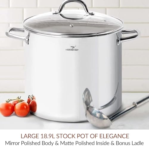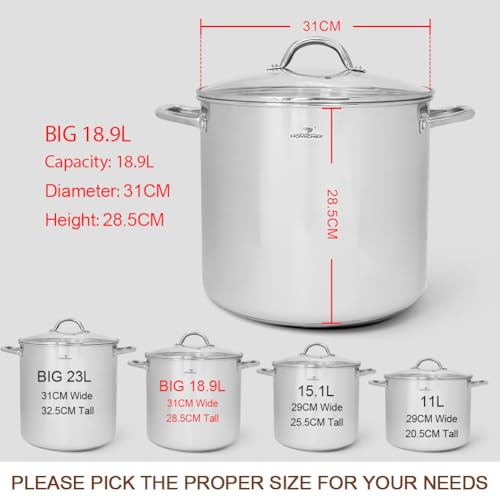 HOMICHEF 19L Nickel Free Stainless Steel Stockpot with Lid – Healthy & Safe Induction Cooking Pot – Mirror Polished Heavy Duty Soup Pot – 31cm Wide Large Stockpot