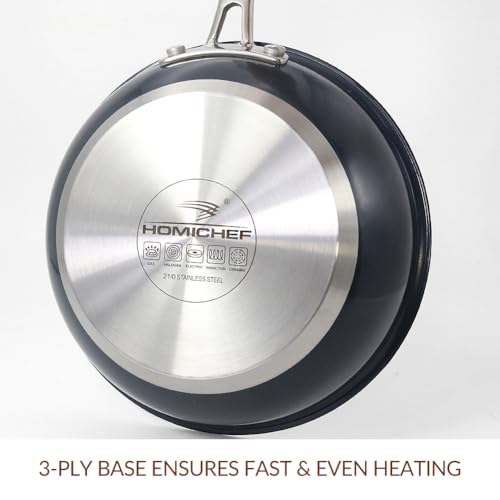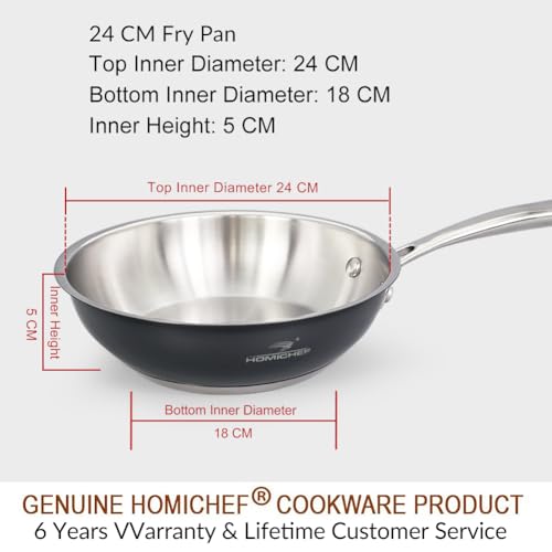 - DEVOTED CUSTOMER SERVICE – Genuine HOMICHEF stainless steel cookware products, certified by ISO9001, BSCI, etc. – TRADEMARK filed in U.S.A. – In business since 1998 – This product comes with 6-Year Product Warrantv & LIFETIME Customer Service – You can always come to us for discounted parts, cooking consultations, and customer service at HOMICHEF store on Amazon. – Discover the GOURMET CHEF IN YOU with this HEALTHY & BEAUTIFUL & EFFICIENT fry pan.