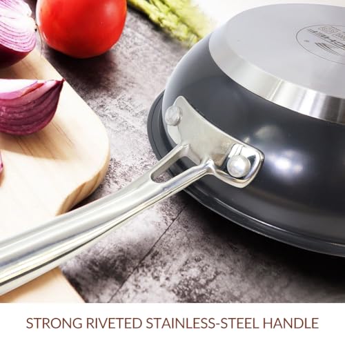 HOMICHEF Navy Gray 24 CM Nickel Free Stainless Steel Fry Pan – No Coating Frying Pan Induction – No Toxic Stainless Steel Wok Nickel Free Skillet