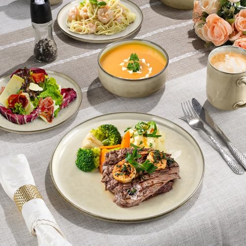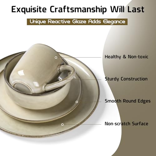 Homikit Dinner Set for 4, 16-Piece Reactive Glaze Kitchen Dinnerware Sets, Vintage Stoneware Included Plates Bowls and Mugs, Non-Scratch & Sturdy, Dishwasher & Microwave Safe, Desert Khaki
