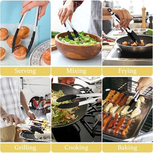 - Premium Materials: Crafted with food grade silicone and premium stainless steel, no need to worry about breaking or rusting; Our kitchen tongs for cooking is healthy and sturdy for long-term use, Ideal as a housewarming gift for your friends and family