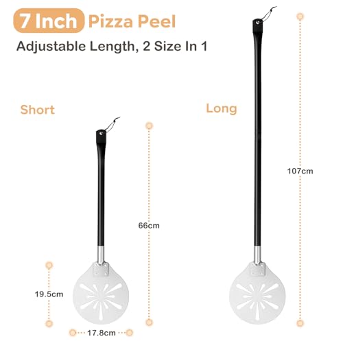 - Two Sizes for Your Ovens: The handles can be adjusted into two different lengths: shorten length is 66cm and extended length is 107cm, this versatility will fit your specific needs, Great for brick oven, electric oven and all kinds of home pizza oven, Its long length keep you safety from the high heat, Detachable design for easy storage and carry