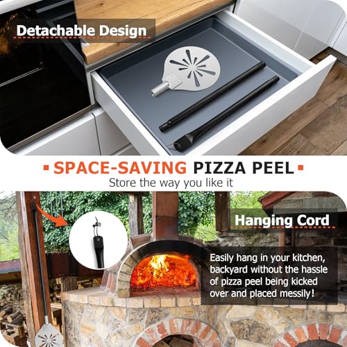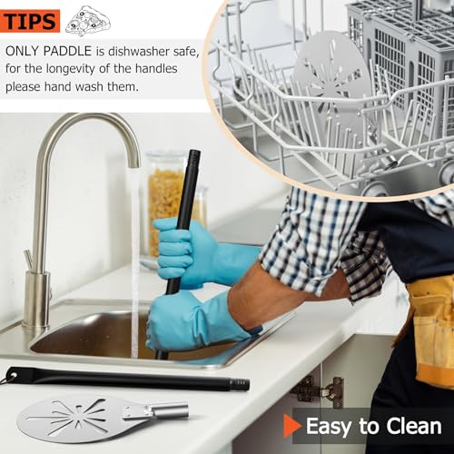 - Easy Use & Cleaning: Come with 1x pizza shovel and 2x handles, No tools required and it can be installed manually, Small hanging hole and a string for easily hanging on the wall; The pizza paddle and handles are recommended hand-washing only to extend their service life