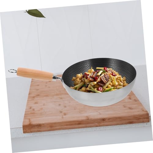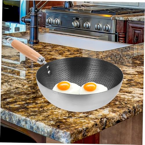 Mobestech Honeycomb Wok Stainless Steel No Coating Non Stick Pan for Kitchen Cooking Pot Traditional Wok Household Use Handle