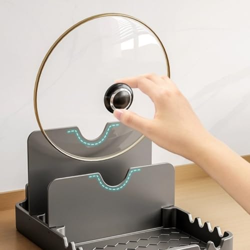 • [SPACE-SAVING DESIGN] This pot lid holder is expertly crafted to optimize kitchen counter space, keeping your pot lids neatly organized and clutter-free.