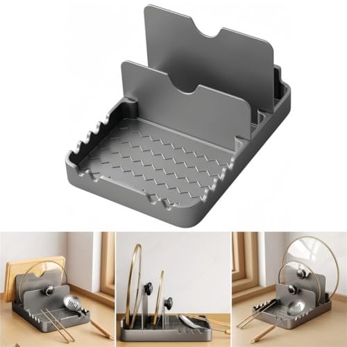 Honseadek Pot Lid Holder For Kitchen Countertop, Spoon Rest With Drip Pad, 2-in-1 Utensil Organizer, Aluminum Rack For Lids And Spoons
