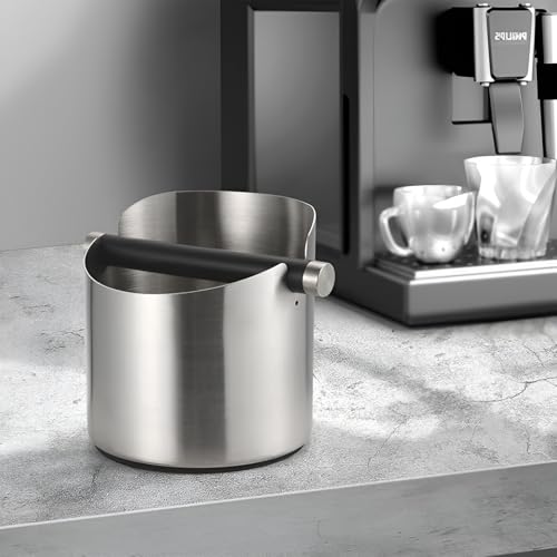 - Low Noise + Non-Slip: The coffee knock box is equipped with a removable rubber strip on the bottom, which not only provides a firm footing and prevents slipping when tapping the container, but also features a special noise-dampening impact bar that absorbs over 50% of the impact noise and reduces the unpleasant, loud stirring noise.