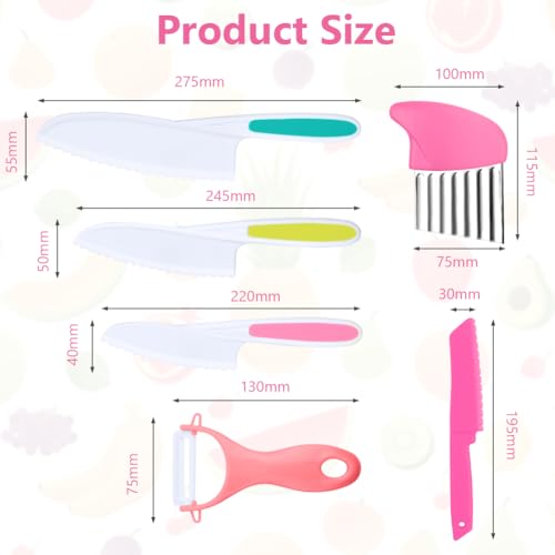 HOTUT Montessori Kitchen Tools,6Pieces Knives for Kids Nylon Kids Safe Cooking Knives Serrated Edges,Y Peeler For Cooking and Cutting Fruit,Suitable for Children and Beginners
