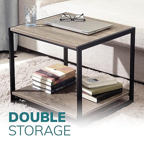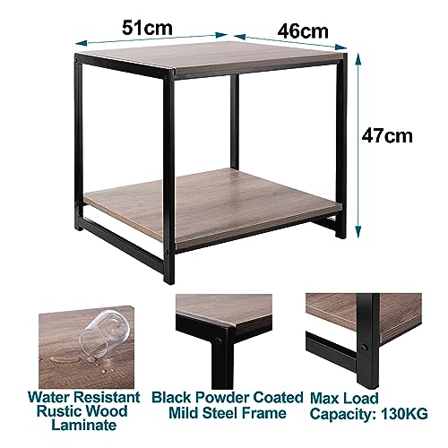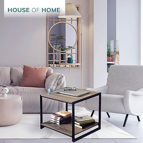 House of Home Rustic Coffee Table with Storage – Industrial Metal Frame, Easy Assembly, Multipurpose Side Table for Living Room or Bedroom – Stylish and Compact, 46 x 51 x 47cm