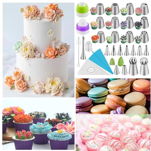 HQILRRA Set of 59 Russia Pastry Tips, Floral Frosting Tips, Frosting Dispenser, Nozzle Tube, Pastry Tips, Cupcake Pastry Accessories Set for Decorating Cakes, Cupcakes, Pastries (59 Suits)