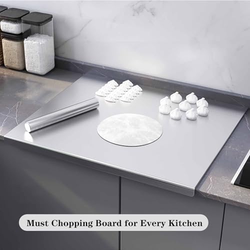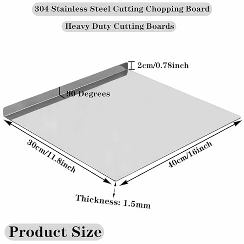 - 【Premium Quality】- Made of High Quality 304 Stainless steel. This food-graded stainless steel board is sturdy enough to stand high pressure without hurting the surface. More durable than wood or plastic cutting boards.