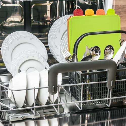 - 【COLOUR-CODED SELECTION】 Hunnycook colourful chopping boards for kitchens are coded by different colours: green, yellow, red and orange, two for vegetarian food, and two for non-vegetarian food (but of course you can define them by your own). Different chopping boards avoiding mixing food flavors when you are cutting food. More importantly, sorted chopping boards can be used to separate raw and cooked so as to prevent cross-contamination.
