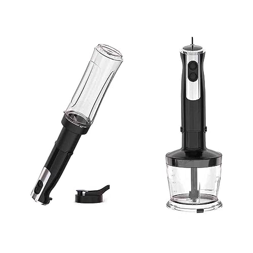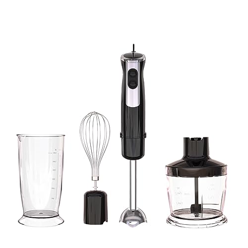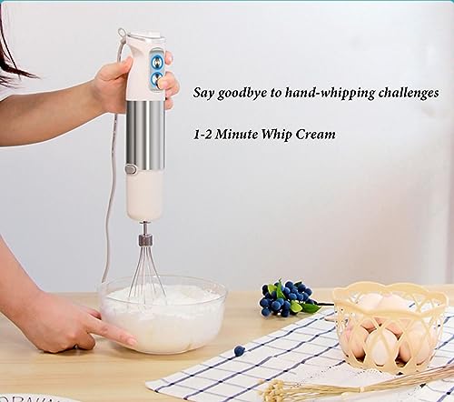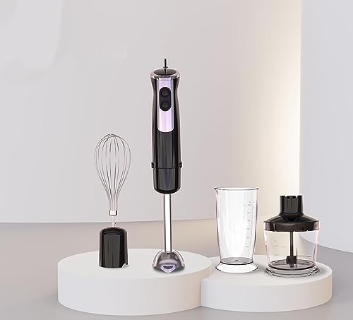 - EFFICIENT HAND BLENDER: Equipped with a powerful 600W motor, this stick blender quietly and perfectly handles more blending tasks (whisk/twin forks + measuring cups + meat grinder cups + frother + stirring stick), cuts through the food with ease and is perfect for baby food, soups, juices, smoothies and more.