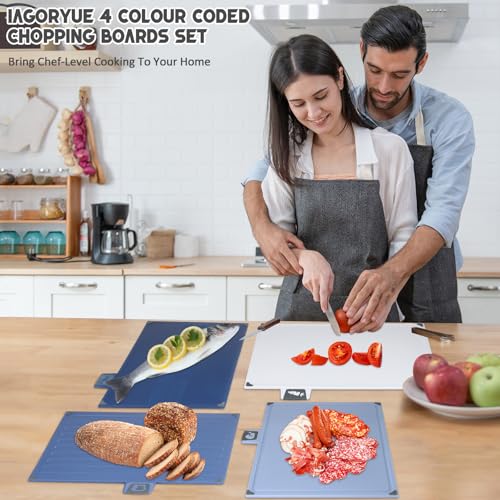 - BEST GIFT: IAGORYUE is committed to excellence and innovation, offering kitchen cutting board set that seamlessly blend elegance and functionality. These plastic chopping board sets are ideal for any kitchen, restaurant and outdoor activities such as barbecues, picnics or camping. Our set of 4 coloured chopping boards are packed in exquisite box, will be a practical yet stylish gift for festival or special event, like Mother's Day, Father's Day, Thanksgiving, birthdays, housewarmings, Christmas.