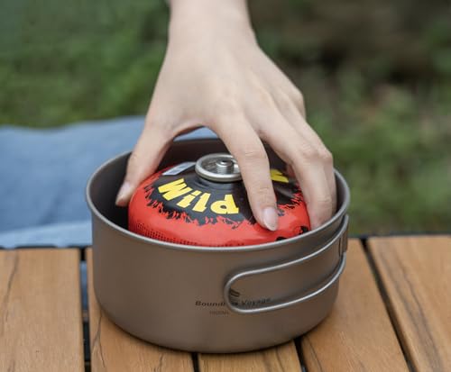 iBasingo Titanium Pot Pan Set 1000ml & 500ml Camping Cookware Outdoor Backpacing Cooking Mess Kit Lightweight Compact Portable Hiking Picnic Cookset with Folding Handle for 1 People Ti2042C