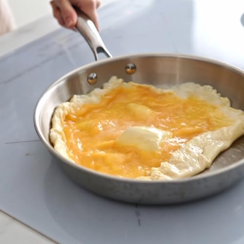 - Made of three-layer material: 18/10 stainless steel on top face + inner aluminum + 18% stainless steel on bottom face, stainless steel handle.