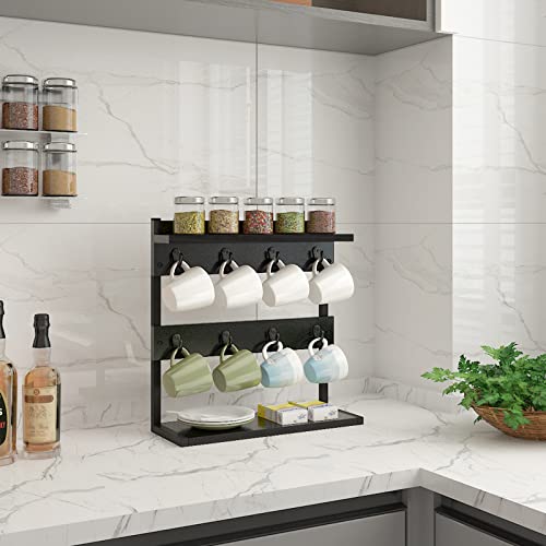 - CLUTTER FREE & SPACE SAVING: Are you still worrying about your beloved cup being messy and nowhere to put it? Let this L-shaped industrial style mug holder solve your worries. 2 tier design can holds up to 8 coffee mugs, teacups. Strong up & down stands provide more space for sugar, coffee beans, dessert plates.