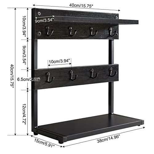 - STURDILY CONSTRUCTION: Made of particle board and supported by black metal frames. Strong bearing capacity, not easy to deform, flat and smooth surface, and easy to clean. All hooks are made of high-quality metal to keep your coffee mugs securely in place. Large wide base so stable, sturdy and long-lasting comparing to others.