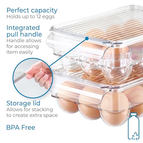 iDesign 73030 Fridge/Freeze Binz Egg Holder, Small Storage Box for Twelve Eggs, Made from BPA-Free Plastic, Clear