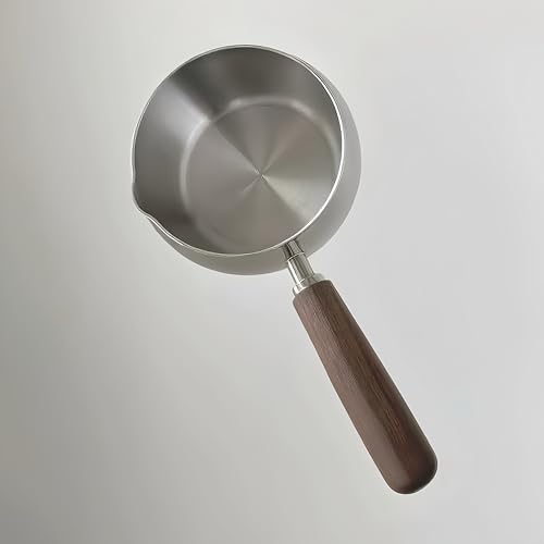 IMEEA Milk Pot 500ml Butter Warmer Pot SUS304 Stainless Steel Milk Saucepan with Wood Handle for Coffee Chocolate Melting