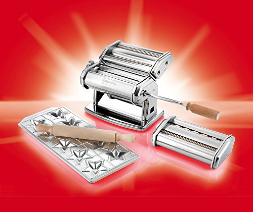 Imperia Italian Pasta Maker Gift Set, Silver – Includes Pasta Machine, Ravioli Mold, Roller & Cutter Attachments