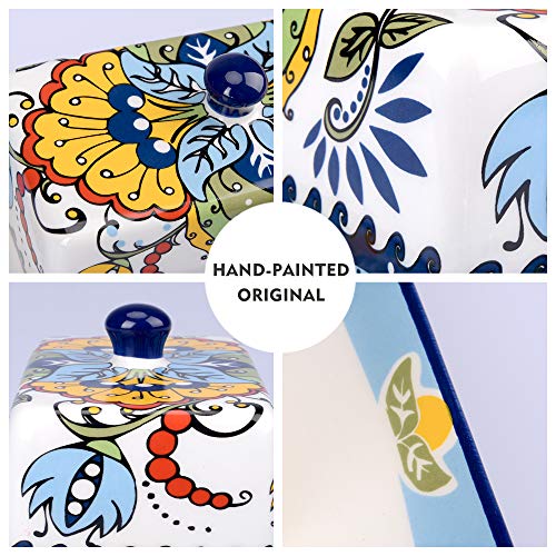 - Stylish Colors: A appealing look with a unique design, this butter dish with lid is a perfect accent to kitchens and dining rooms. The hand-painted design of the butter dish is like a piece of art.