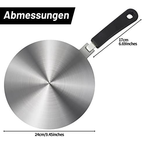 LEUOVE Induction Plate Adapter for Glass Cooktop Heat Diffuser for Electric Gas Glass Stove with Detachable Handle, 24CM