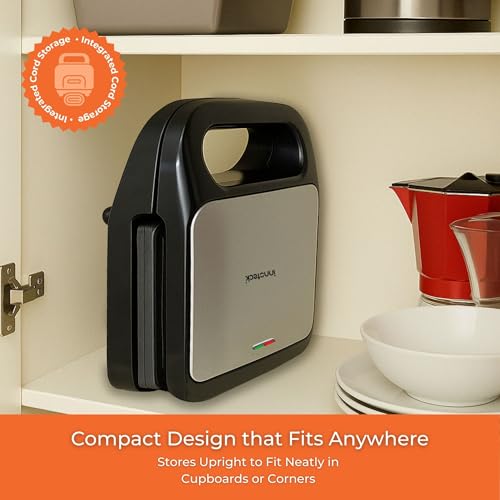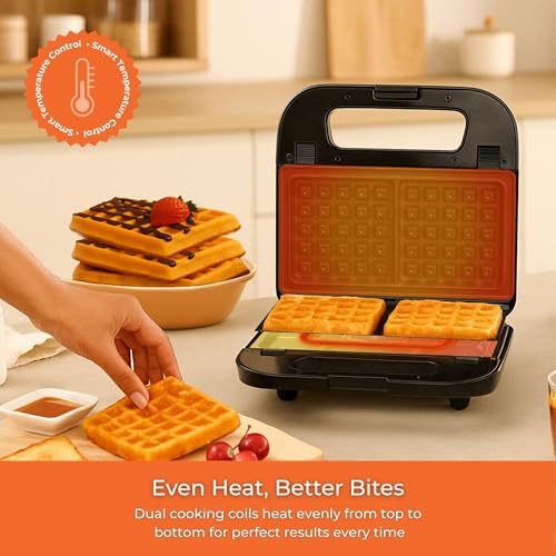 - PRECISE THERMOSTAT: Achieve consistent, restaurant-quality results with our powerful 750W heating element and precise thermostatic control. Enjoy perfectly grilled, toasted, or waffled snacks with even heat distribution and golden-brown perfection every time.