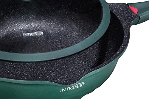 Deep Non-Stick Frying Pan with Lid – 3-in-1 Sauté Pan, Skillet & Mini Wok – GREBLON Ceramic Coating | Induction Hob Safe | Stainless Steel Base |PTFE & PFOA Free (Green, 28 cm)