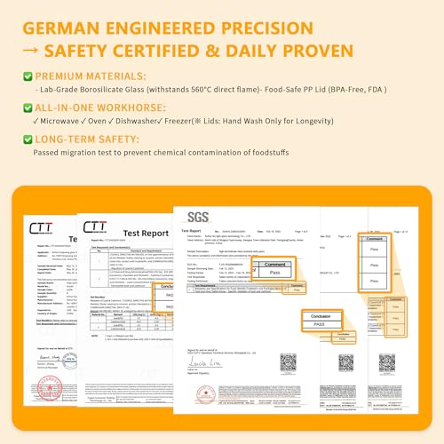 - High Borosilicate Glass Meal Prep Containers: This high-quality borosilicate glass container is reusable, avoiding the frequent use of disposable plastic containers and the generation of plastic waste. The tasteless glass material does not affect the taste of the food and can maintain the freshness and flavor of the food.