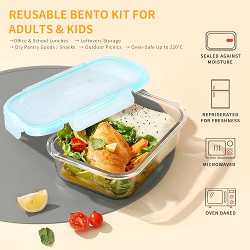IUGHN 640ml Glass Food Containers With Lids, Set 2 Glass Containers with Lids, Leakproof Seal Food Storage Container, BPA Free, Meal Prep Container for Microwave, Oven, Freezer and Dishwasher