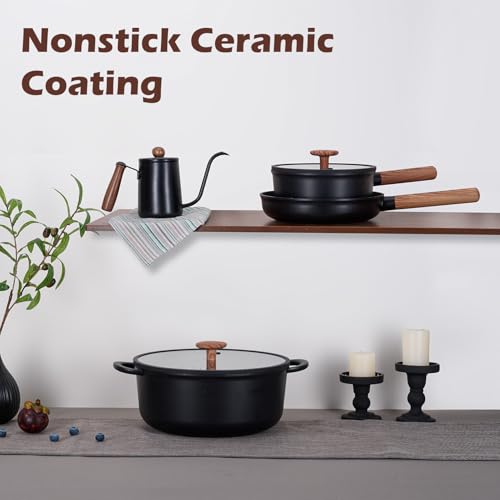 - Healthy Ceramic Cookware: JEETEE pots and pans set has ceramic non-stick coating, which is 100% Cadmium Free, PFOA Free, PFOS Free, and Lead Free. You can enjoy your cooking on JEETEE cookware safely and easily.