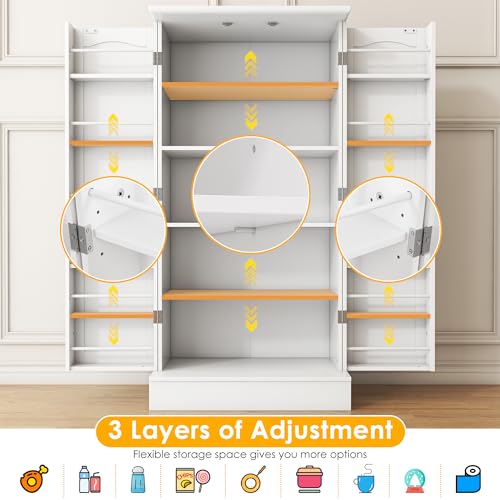 - 🍗🥃【Fashion Unique Design】This white pantry organization and storage has an elegant and smooth white finish and beautifully flowing lines, exuding an air of sophistication and elegance! Whether your home is decorated in a modern or retro style, this food pantry cabinet fits perfectly and reflects your extraordinary taste!