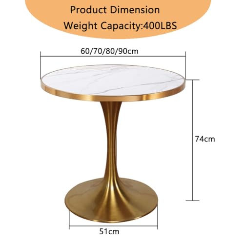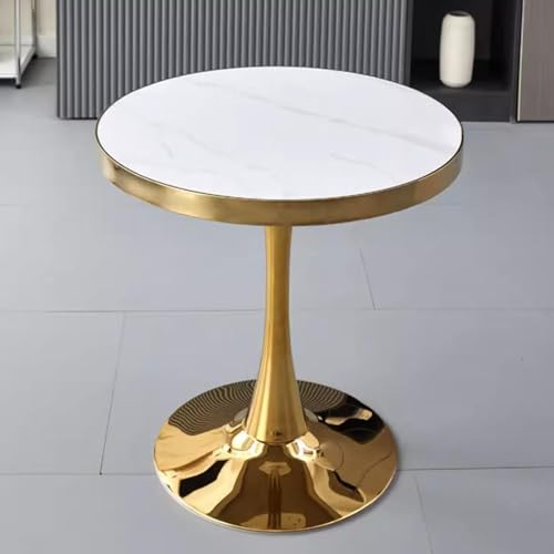 JHAISMAO Round Faux Marble Bistro Table For 2, Modern Kitchen & Dining Room Table White Marble With Gold Round MDF Metal Base Luxury Tulip Tables For Kitchen Living Room(Size:80cm,Color:White)