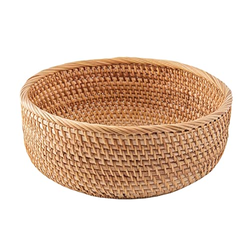 JINGYAN Egg Baskets Handmade Living Room Fruit Bowl Vegetable Basket Wicker Picnic Tray Food Bread Dishes Multipurpose Drying Storage(L)