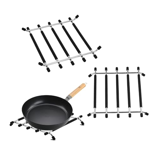 • Heat resistant:Trivets for hot pans High Temperature Resistant is perfect for use in the kitchen, dining table and cooking environments make, the high temperature resistant and silicone insulated design prevents hot pots, pans and dishes from leaving marks on the kitchen countertop and keeps the steel from conducting heat, easy to store, ideal for hot pots and pans and dishes.