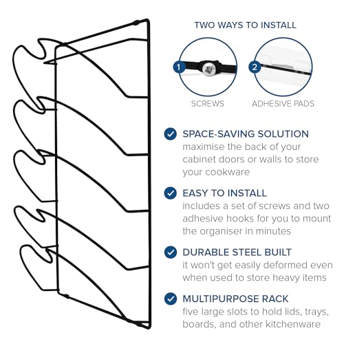 Joeji's Pot Lid Holder – Pan Rack & Organizer for Cupboard, Pot Lid Storage Solution, Kitchen Pantry Organizer – 5-Tier, Black