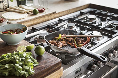 NON-STICK FRYING PAN WITH GRIDDLE LINES – designed in Bristol, England, and made from durable 18/0 stainless steel for excellent performance and ridges to create brown griddle lines;