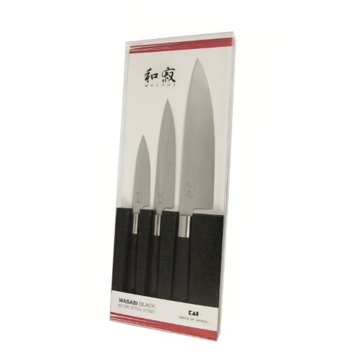 - Discover the versatile KAI Wasabi Black Knife Set, consisting of utility knives in 10 cm and 15 cm, and a 20 cm chef's knife. Each knife is made of 6A/1K6 stainless steel, polished to a Rockwell hardness of 58 (±1) HRC for long-lasting sharpness and precision.
