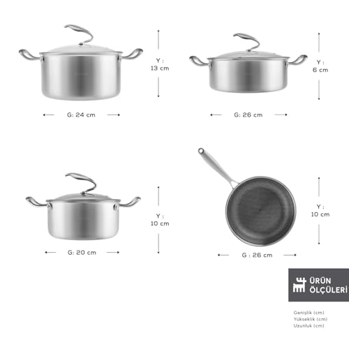 - Easy Cleanup: Designed with convenience in mind, Karaca 5Ply PowerSteel 316+ Stainless Steel Pan and Pots Set is dishwasher safe, making cleanup a breeze after your delicious culinary creations.
