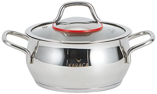 Karaca Emirgan 6 Piece Stainless Steel Induction Midi Set, Dishwasher Safe, Stockpot with Lid 14cm (1.2L), Stockpot with Lid 16cm (1.6L), Stockpot with Lid 18cm (2.5L),