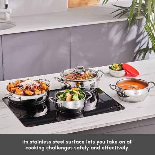 - Sleek Versatility: Introducing Emirgan Stainless Steel Cookware Set in a sleek silver finish, a versatile and reliable companion for your culinary endeavors. This complete cookware collection includes essential pieces such as stockpots with a lid and a casserole with a lid, providing you with the tools you need to create delicious meals.
